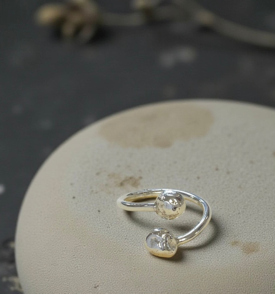 Like the pebbles on your favourite beach each ring in this collection is unique. The molten silver is formed into a pebble shape.