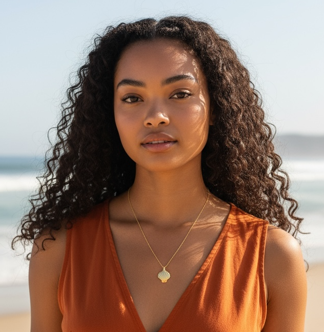Capture the feeling of wind in your hair and the smell of the Ocean wearing these Art Deco inspired Shell Designs.